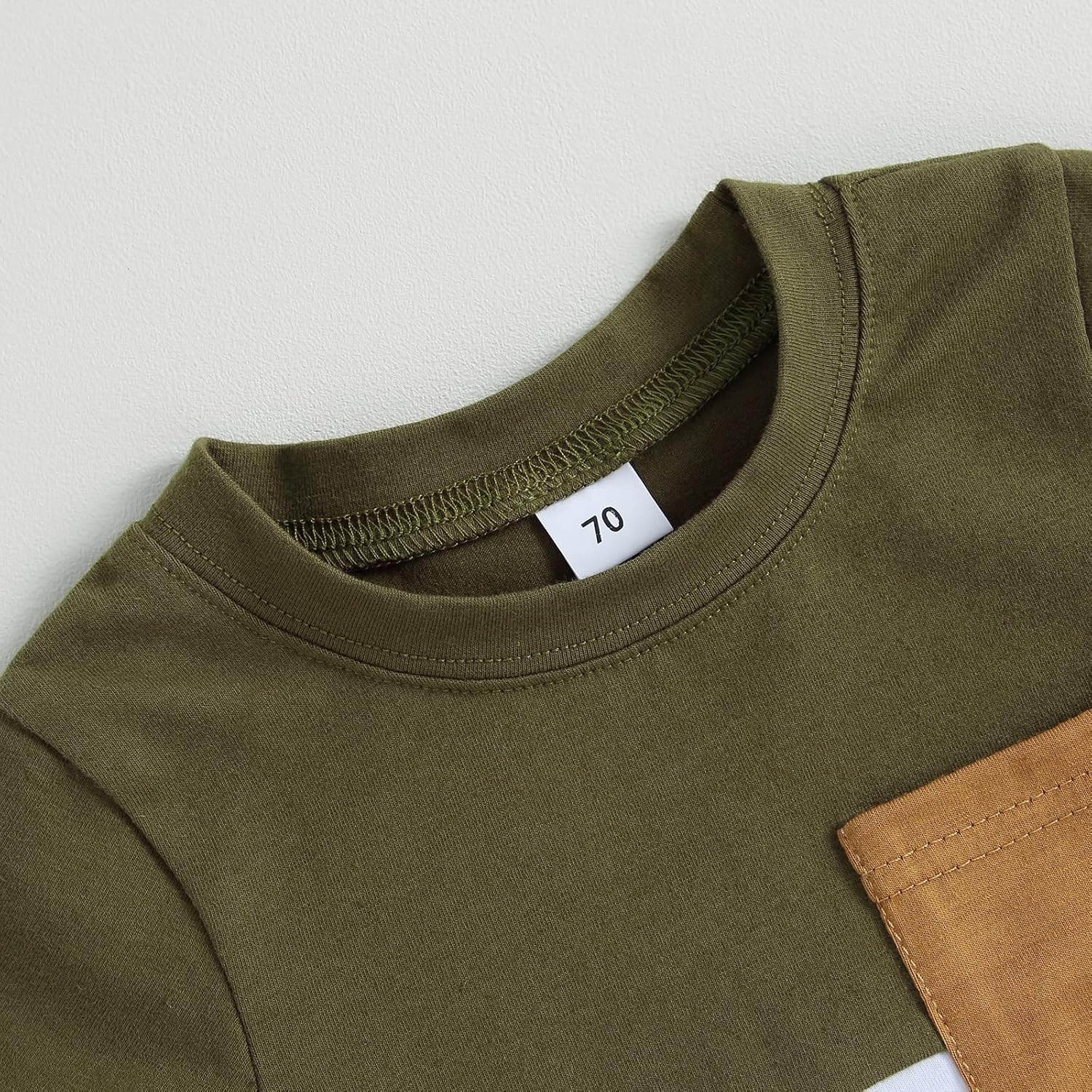 • Relax Crew Neck, One Pocket Front, Striped Pattern, Comfy Short Sleeve T Shirts Tee Tops, Elastic Waist with Drawstring Shorts, Side Pockets, Comfy and Cute Newborn Baby Boys Summer Outfits Clothes
