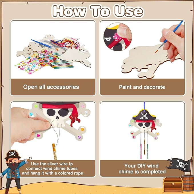 - Great Ideas For Craft Lovers Gifts:DIY wooden pirates wind chimes is a great gift idea for Christmas ,birthday parties, spring parties, summer paties,Mother's Day, Children's Day, Christmas ,pirates Halloween decorations or other holidays.it is also a good sea animals theme craft kits for kids boys girls. And widely used for decoration of Seaside vacation,homes, gardens, windows, doors, classrooms, etc.
