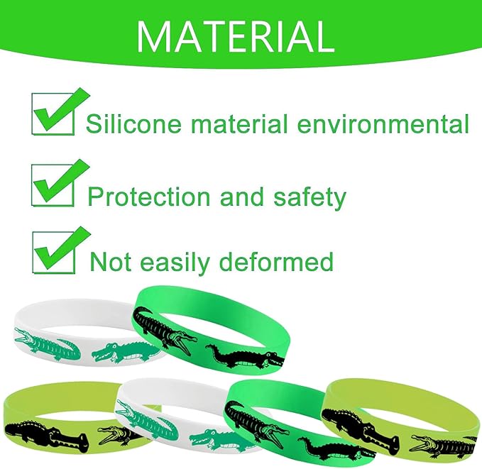 48PCS Reptile Crocodile Party Rubber Bracelets, Reptile Party Supplies Decorations Gifts Prize Goodie Bag Favors Crocodile Silicone Wristbands