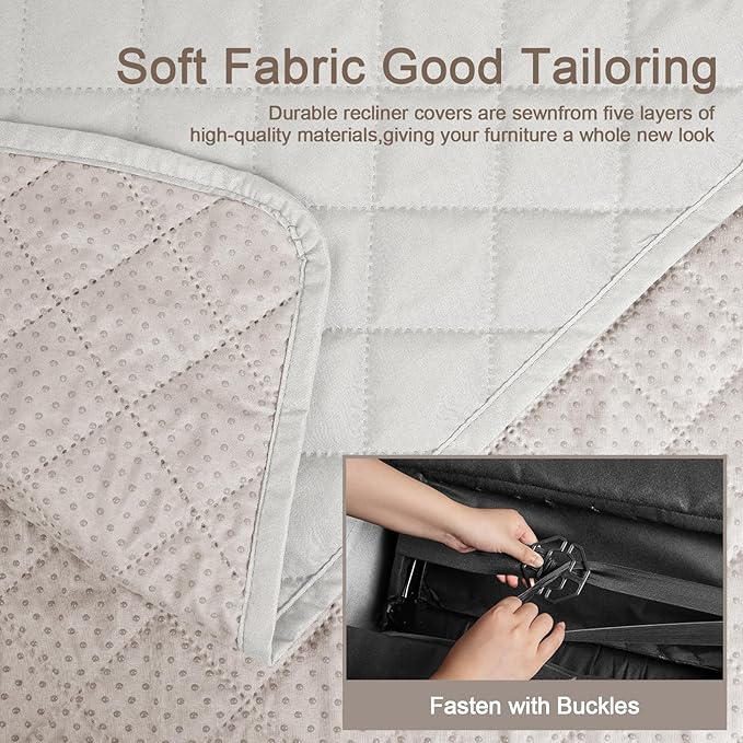 - Stay in Place Design: New upgraded non -slip large particles can reduce the sliding of the loveseat reclining cover, even on the leather sofa. Just drape the furniture with our loveseat recliner covers, tuck the excess fabric into the gap between the back and couch cushion. Then insert the foam stick into the gap. And use the elastic straps secure the slipcover stay in place firmly