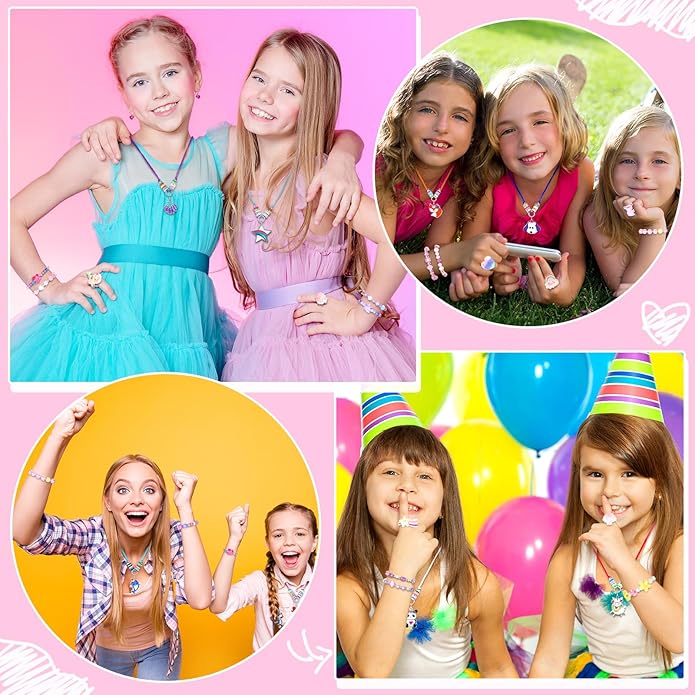 - Long Service Time: these kids necklaces are made of quality alloy, wax line and beads, these play bracelets are made of quality plastic beads; After careful polishing, comfortable wear, skin friendly and easy to maintain, it is not easy to fade and is not easy to damage; All alloy products are safe for girls and can be used with confidence
