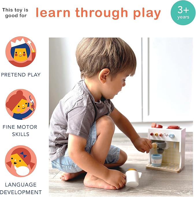 - ESPRESSO YOURSELF - Whether your child is brewing a pretend espresso for a stuffed bear or perfecting their frothy ‘latte art’ skills, your little barista will be brewing up not just coffee but creativity, problem-solving, and fine motor development.