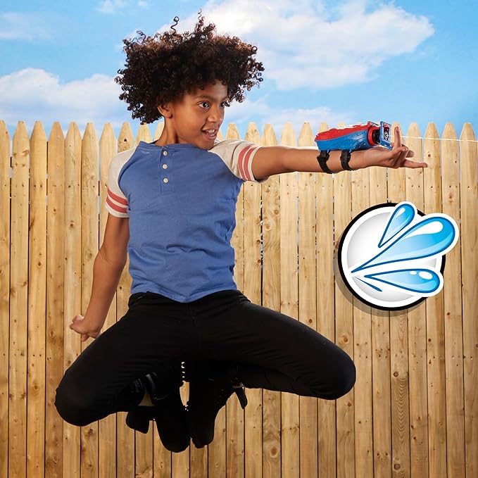 - BLAST WATER, TOO: Fill included water pouch, install inside blaster, and press button to blast water!