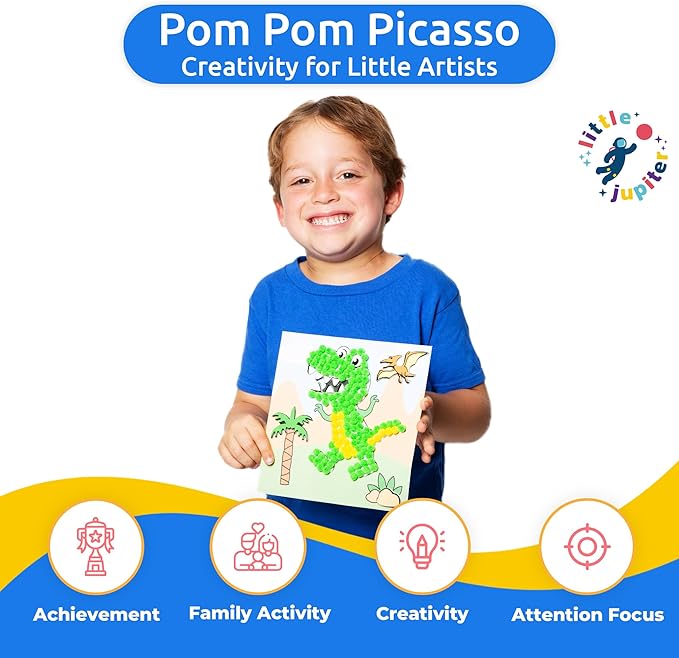 - 😀 Design-A-Kids Work of Art: An extremely fun DIY kit that allows small children to stick colorful pom poms onto a sticker card surface. The perfect arts and crafts for kids ages 3-5 years old.
