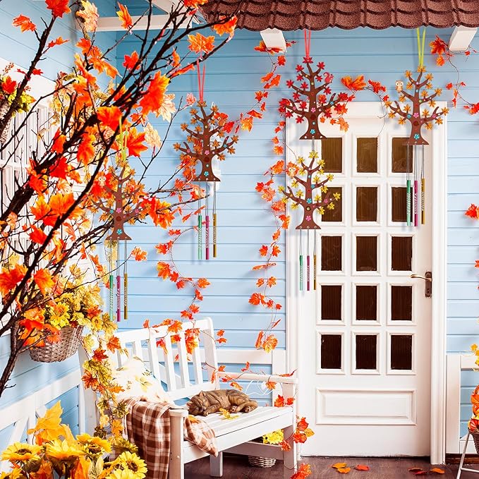 - Great Fall Craft For Lovers Gifts:DIY wooden fall tree wind chimes a lovely way that works well for Thanksgiving crafts, Fall crafts, Halloween crafts,children's arts and crafts class, family party with a bunch of grade school kids,it is also a Fall decoration fo kids,can boost a warm and joyful atmosphere for your party or as as great fall gift for kids.
