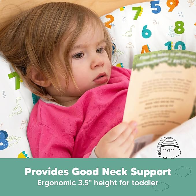 Toddler Pillow with Pillowcase - 13x18 My Little Dreamy Pillow, Organic Cotton Toddler Pillows for Sleeping, Kids Pillow, Travel Pillows, Mini Pillow, Nursery Pillow, Toddler Bed Pillow (Dino123)