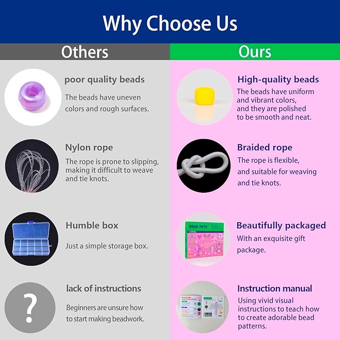 - WARNING AND SERVICE: It is recommended that boys or girls do not use this product alone and should be supervised by adults. Avoid putting the beads in the mouth. If our product arrives missing or damaged or if you are unsatisfied in any way, please contact us, and we will provide you with satisfactory after-sales service.