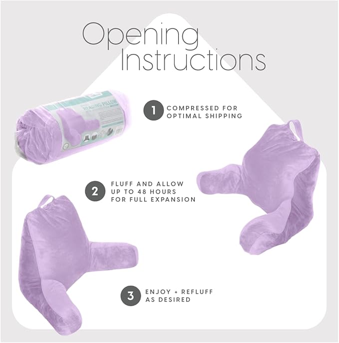 Milliard Reading Pillow with Shredded Memory Foam, Large Adult Backrest with Arms, Back Support for Sitting Up in Bed with Washable Cover (Sit up Pillow) (Lavender)