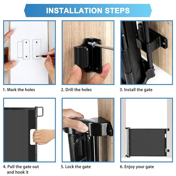 - Easy to Install: Our child gate for stairs come with all the installation hardware and a step-by-step illustrated manual. You can install the new mesh baby gate within a few minutes.