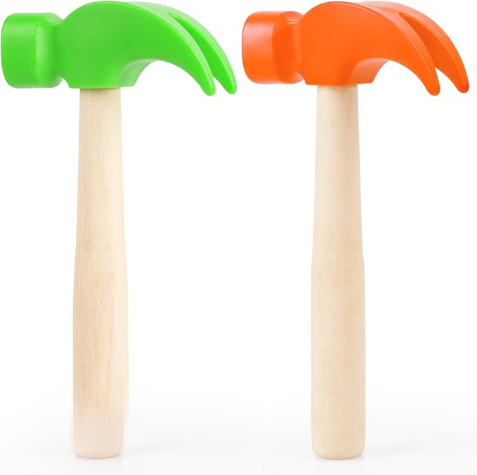 2 Pack Wooden Hammer Toys Simulation Hammers Maintenance Tools Educational Toys for Kids Birthday Party Games Supplies (Orange + Green)