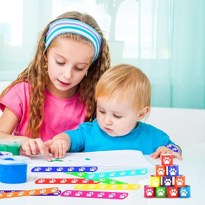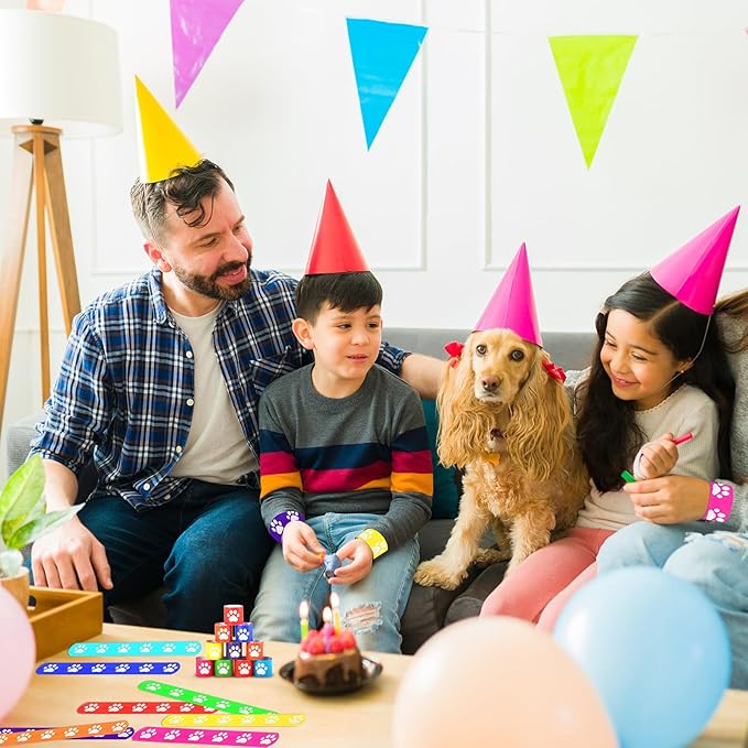 40 Pcs Dog Paw Print Slap Bracelets,Dog Party Favors Bracelets for Kids Pet Party Decorations Paw Print Snap Wristbands for Pet Theme Party Birthday
