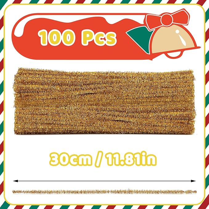 Hssugi Gold Pipe Cleaners, 100PCS Pipe Cleaners Craft Supplies, Glitter Golden Pipe Cleaners Bulk Fuzzy Sticks for DIY Art and Craft Projects Home Decoration