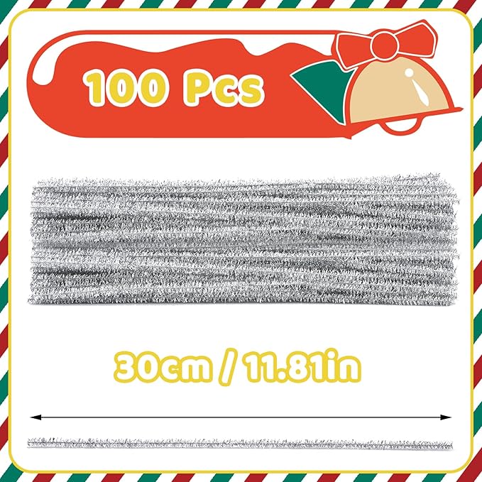 Hssugi Silver Pipe Cleaners, 100PCS Pipe Cleaners Craft Supplies, Glitter Golden Pipe Cleaners Bulk Fuzzy Sticks for DIY Art and Craft Projects Home Decoration
