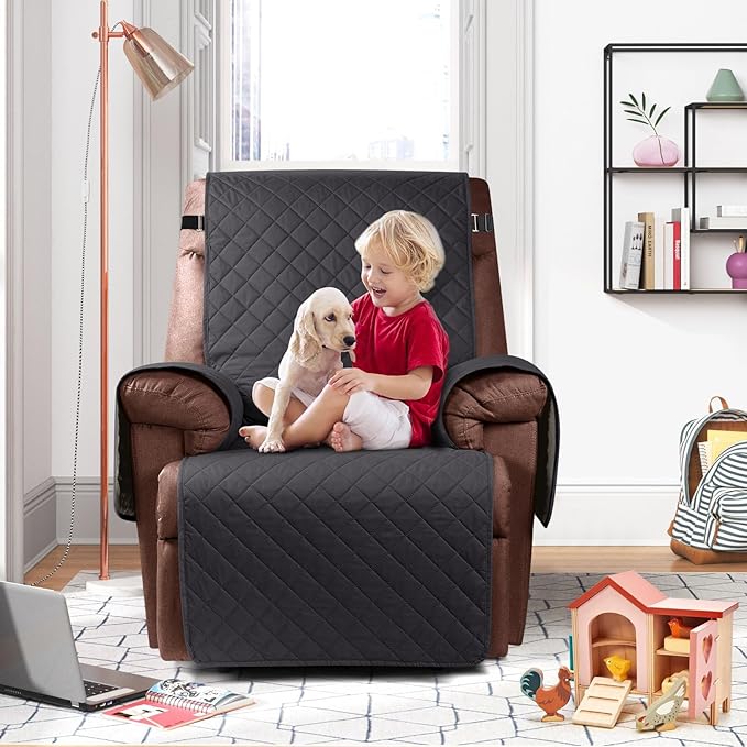 KinCam 100% Waterproof Recliner Chair Cover, Reclining Couch Covers for Pets, Dogs, Recliner Couch Slipcover Furniture Protector with Elastic Straps for Kids(23.6", Charcoal Gray)