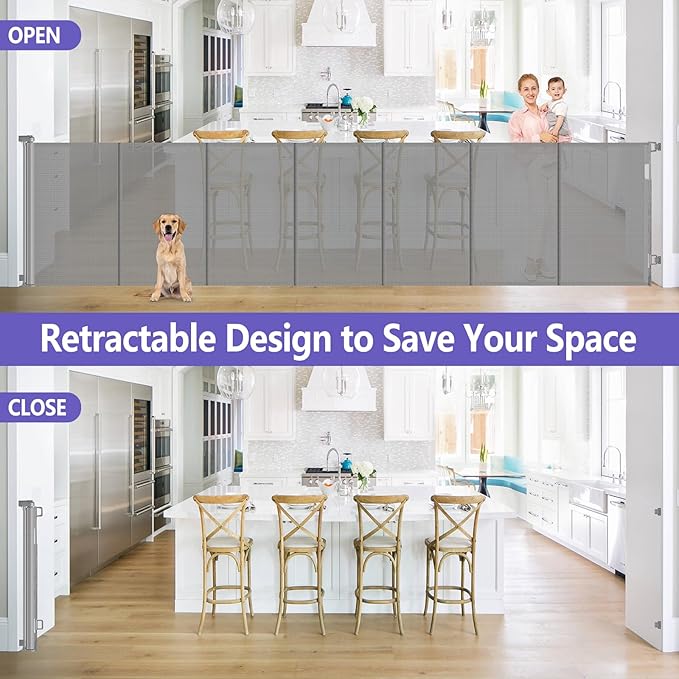 - Easy One-Handed Operation: Adults can effortlessly open/close the retractable pet gate with just 1 hand, while also preventing accidental access by kids.