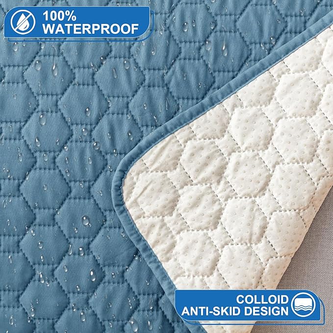 100% Waterproof Recliner Chair Covers That Stay in Place, Non-Slip Recliner Cover with 5 Pockets, Elastic Straps, Washable Reclining Chair Protector for Kids, Pets, Dogs, Gray Blue