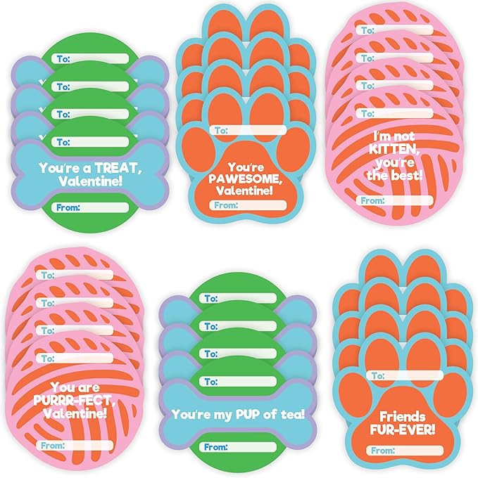 - Comes with 12 Cat & 12 Dog wooden paint kits, matching stickers, and adorable cards shaped as yarn, bones, and paw prints!