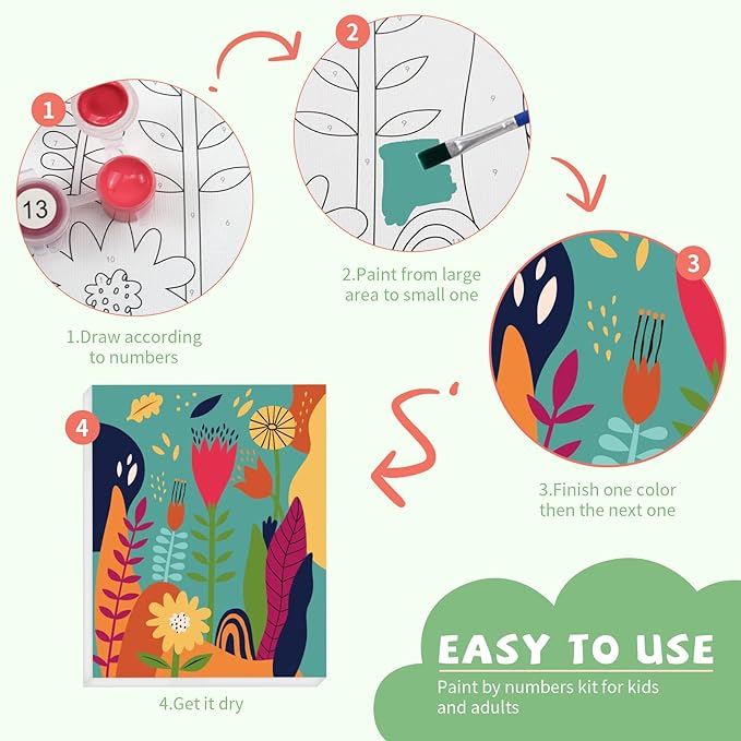 - Easy to Paint By Number: Each canvas painting for kids and adults comes with numbered sections and a color guide that allow you to easily follow and create beautiful works of art. Don’t request any painting basics and very suitable for adults, children and beginners of all ages.