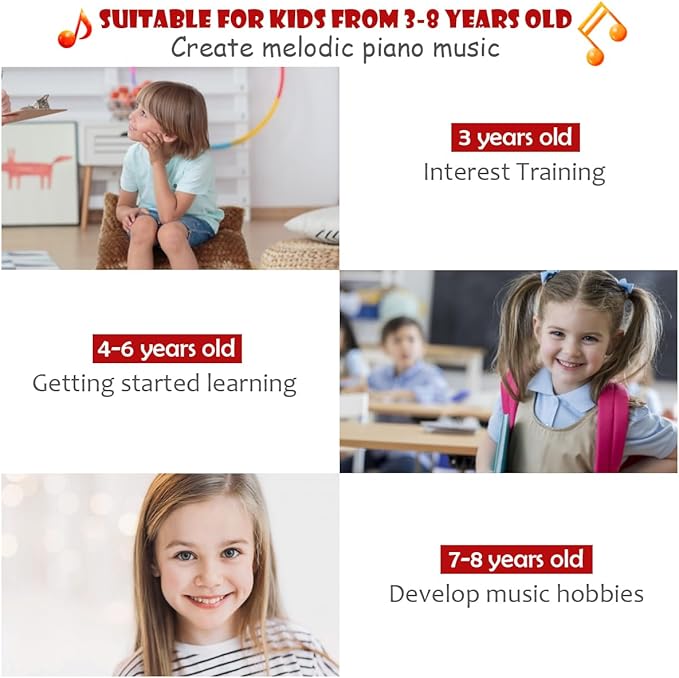 • 【Wonderful Piano Experience】Featuring 30 keys with appropriate sizes and 0.8” key height, this classical kids piano will make your little one play more intently and immersed in the elegant melody. The key size is suitable for kid’s fingers, and each key is effortless to press.