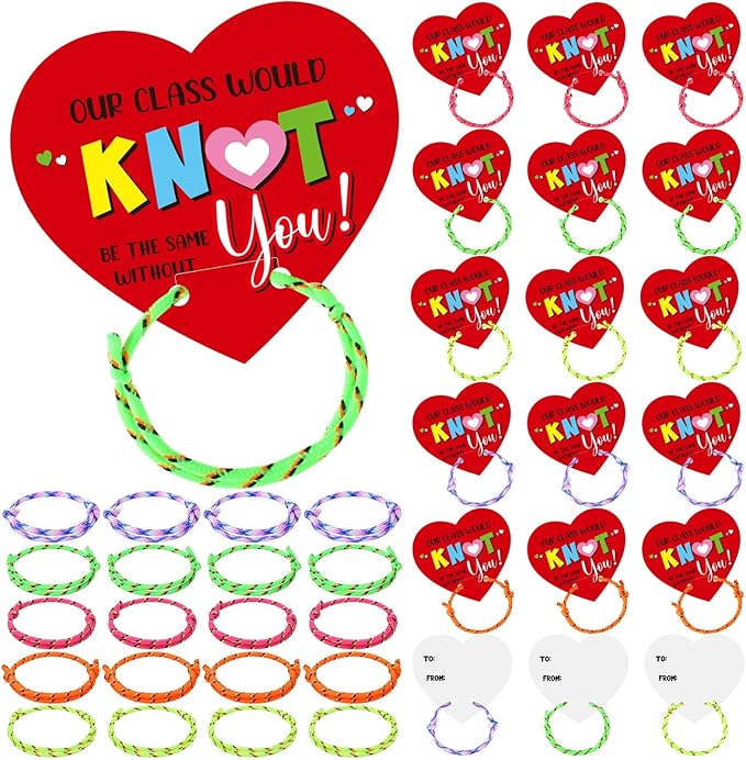 - Express Love Uniquely: this Valentine knot bracelets with card set is unique because it allows people to express their love uniquely; With space for personal inscriptions, and printed words of Our Class Would Knot Be The Same Without You, each card can carry a special, personalized message for the receiver, adding a touch of intimacy to your Valentine's Day celebrations