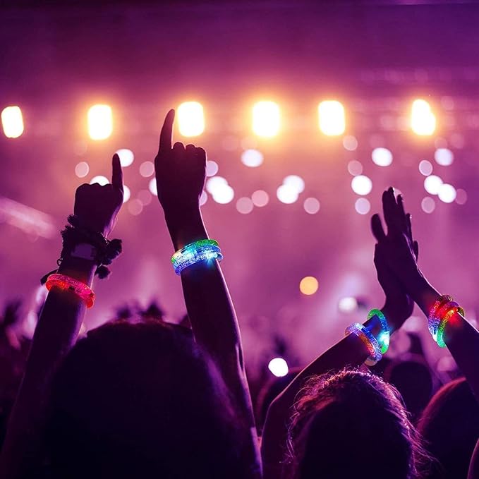 - Safe and reliable quality: The light up bracelets are made of thick hard plastic. Equipped battery meets safety standards, and 1 sets battery Lasts over 6-12 hours, so, let's shine