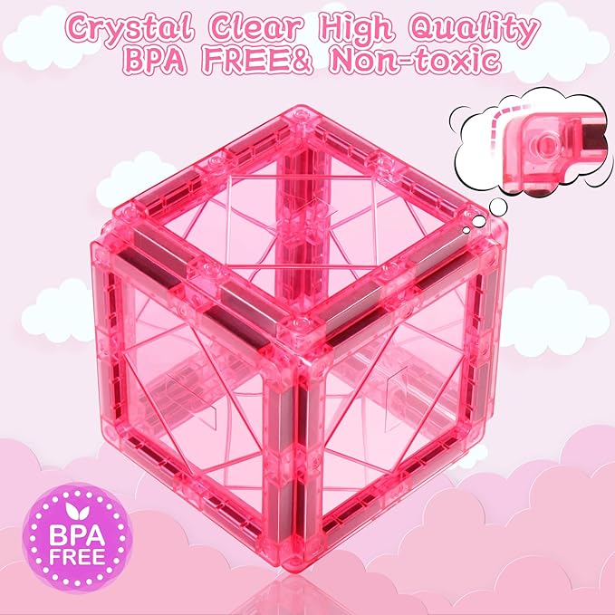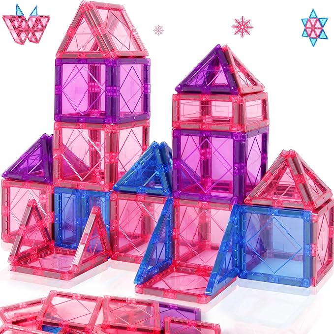 Magnetic Tiles Toys for 3 4 5 6 7 8 Year Old Boy Girls Kids Beginner Set,Magnetic Building Blocks Learning Toys for Toddlers Age 2-4 3-5 4-5 5-6 6-8 Birthday Christmas Ideas (20PCS Pink & Purple)
