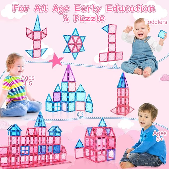 - GIFT IDEAS FOR HOLIDAY:Educational toys for 2 3 year old boys girls are suitable for any festivals and occasions,like birthdays,Christmas,Halloween Easter,Preschool,Day Care Centers and so on.The magnet building tiles are packaged in a beautifully designed box,the right gift toys for kids ages 2-4 3-5 4-5 5-6 6-8.