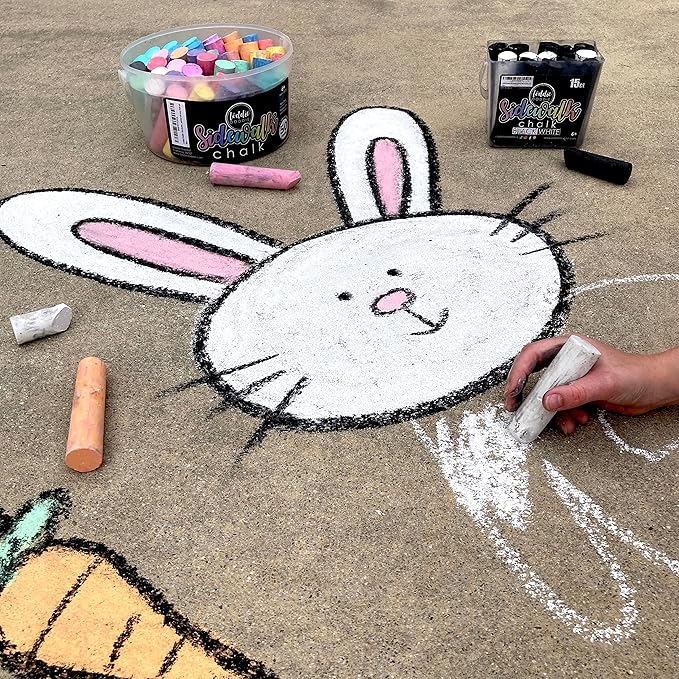 - Bright Creations: Unleash creativity with this pack of white chalk. This white sidewalk chalk pack is perfect for stunning winter art. Fun for all ages—kids, teens, and adults—this white sidewalk chalk jumbo stick pack is the go-to choice for bold holiday decorations and creative expression