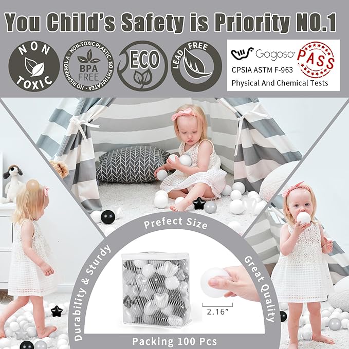 - Premium Quality: Our GOGOSO ball pits balls 100pcs stars and hearts are made made of phthalate-free, BPA-free, and non-toxic materials thicker and more durable materials, each ball capable of withstanding over 140 pounds of weight. Enjoy worry-free playtime!ensuring long-lasting fun for your kids play.