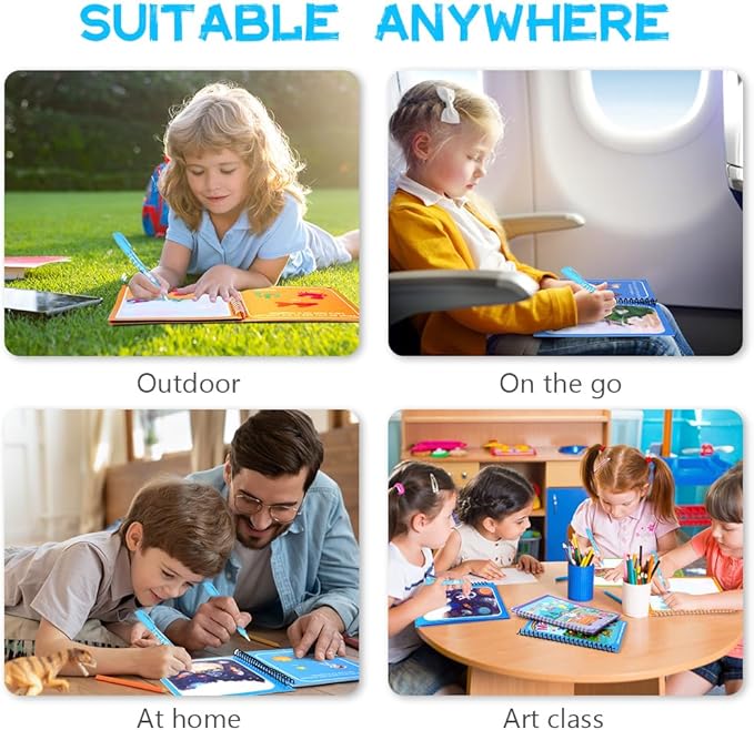 - Educational significance: This set of watercolor book educational learning toys can stimulate children's creativity and imagination, improve children's hand-eye coordination, reduce the time of using electronic devices, and help young children learn more knowledge. Perfect as novelty gifts for children and friends on birthdays, Christmas, Children's Day, festivals and other occasions; They can use these watercolor coloring books at home, in the classroom or outdoors.