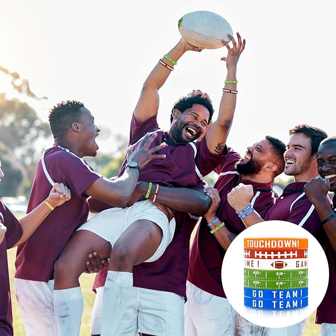 - Product Content: You will receive 35 pieces of silicone football bracelets in 5 designs, 7 pieces each, including important elements of football parties such as TOUCHDOWN, GO TEAM and helmets.