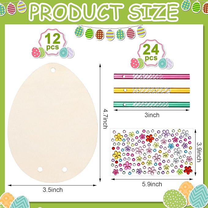 - Included in The Package: our package includes 12 sets of Easter egg wind chimes craft kits, total including 12 wooden Easter egg cutouts, 24 aluminum wind chime pipes with rope, a sheet of diamond DIY sticker, and 20 colorful ribbons, providing sufficient supplies for a group activity; The Easter craft kit is ideal for a classroom setting, family get together, or a fun craft day with friends