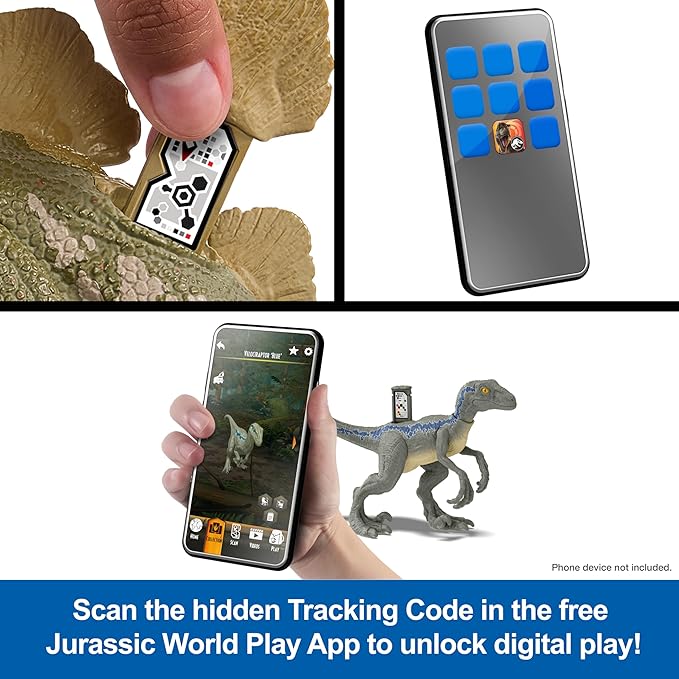 - Digital dino and games! Scan the hidden Tracking Code in the free Jurassic World Play App with a compatible smart device (not included) to collect the digital dino and play fiercely fun games!