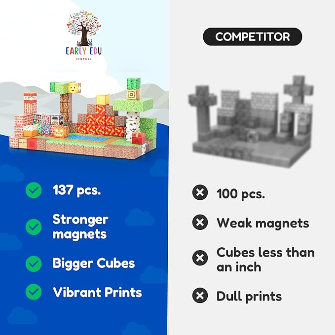 - PERFECT GIFT FOR CREATIVE MINDS – Looking for the ultimate STEM toy that combines Montessori principles and Minecraft-inspired play? This magnetic cube set is the ideal gift for birthdays, holidays, or any occasion to inspire young builders.