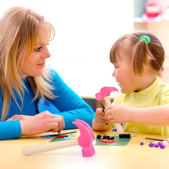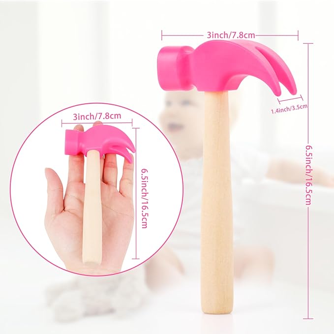 2 Pack Wooden Hammer Toys Simulation Hammers Maintenance Tools Educational Toys for Kids Birthday Party Games Supplies (Rose Red)