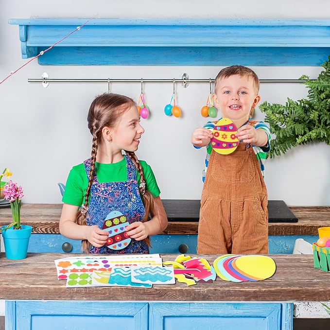- DIY Craft Project for Kids:The Easter egg craft kit for kids is suitable for children over 3 years old.rich colors can develop children's ability to recognize patterns and shapes,it is helpful to exercise children's hand-eye coordination, improving their practical skills and enriching their imagination,creativity, concentration and hands-on ability.