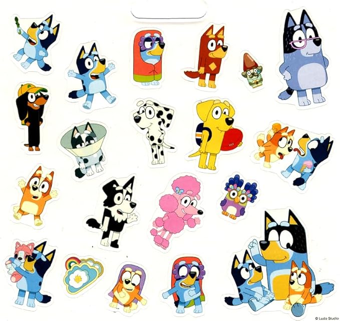 - Bluey Magic Ink Coloring Book Set - Bundle of 2 Imagine Ink Books for Kids. Comes with Bluey Sticker Sheet (over 20 stickers), a Paw Shape Pop Fidget toy and bonus 3D smiley flower Stickers.