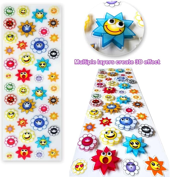 - Bonus 3D smiley flower Stickers: one sheet, not a ordinary sticker. Extra layer create stunning 3D visual effect