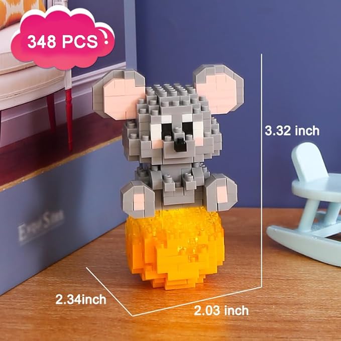 12 Mini Animals Building Blocks Sets Building Block Party Favor for Kids Small Zodiac Animals Pets Horse Dog Monkey Tiger Rabbit Dragon STEM Educational Toys for Boys Girls(Mouse)