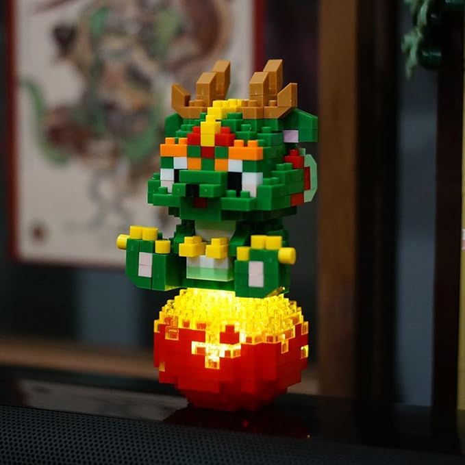 12 Mini Animals Building Blocks Sets Building Block Party Favor for Kids Small Zodiac Animals Pets Horse Dog Monkey Tiger Rabbit Dragon STEM Educational Toys for Boys Girls(Dragon)