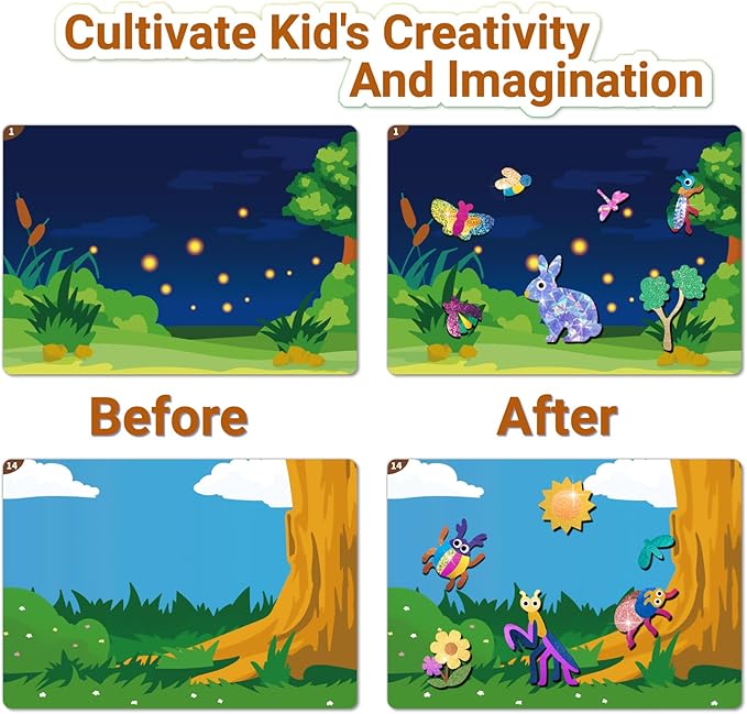 - 【Complete Crafting Experience】Fun art and craft sticker kits is a no-mess creative art activity that keeps kids engaged at home or outdoor activity for hours of creative play! Keep kids engaged and entertained at home, during playdates, art classes, or even in the classroom without worrying about any mess.