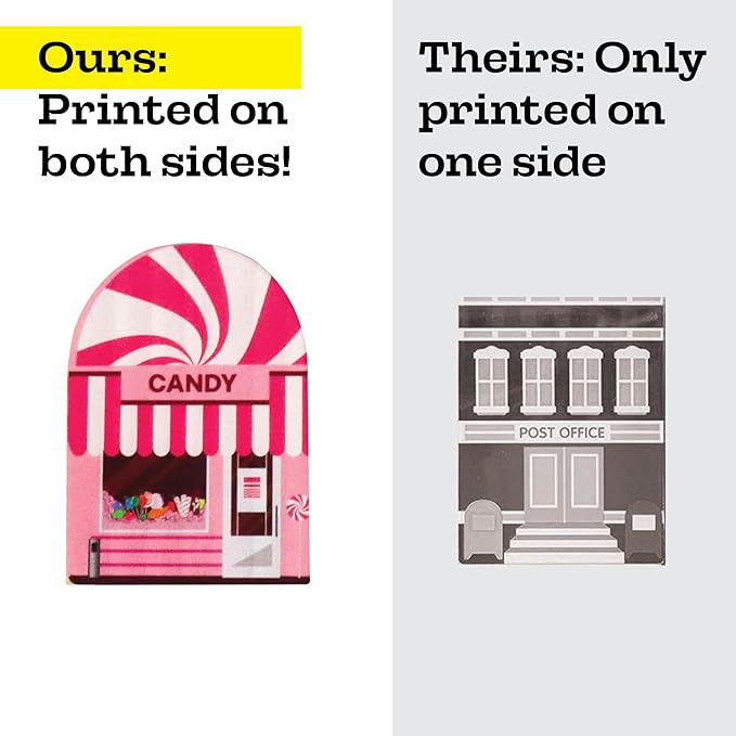 - PRINTING ON BOTH SIDES - Unlike other brands, our wooden buildings and signs have printing on BOTH sides, so the fun can be had from all sides.