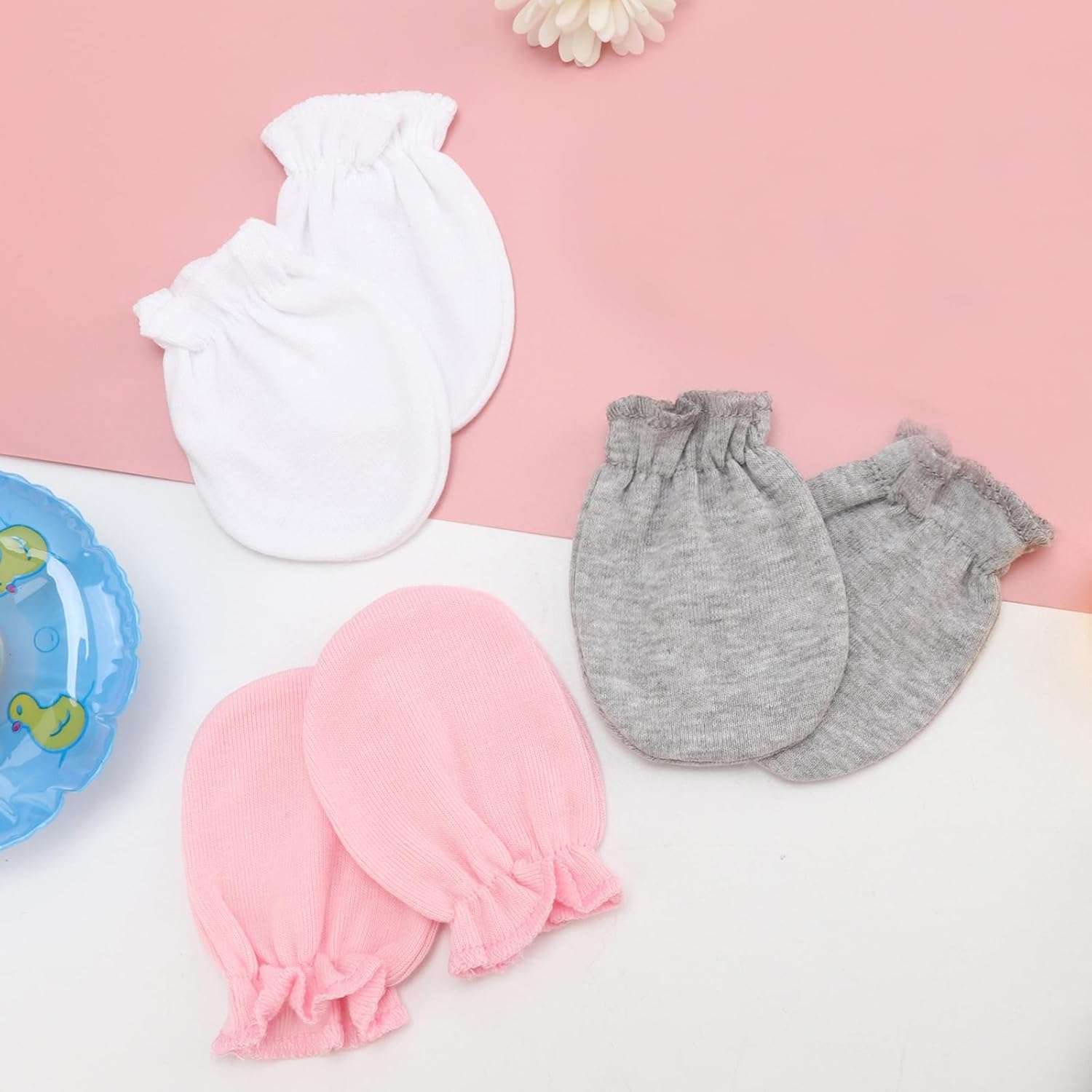 - PACKAGE QUANTITY: You will get 6 pairs of newborn baby mittens in different colors, which are easy to match and offer enough quantity for daily replacement and daily wear, you can also share the cotton mittens with the babies of your friends and family.