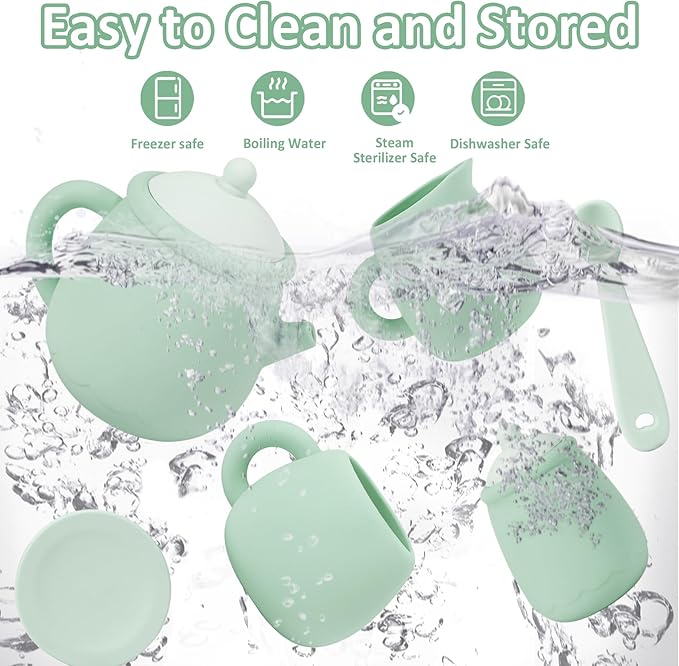 - 【Kids' Fun and Learning】Not only does our cute tea set provide endless entertainment, but it also encourages children to develop important skills such as hand-eye coordination, fine motor skills, and social interaction. So why wait? Transform your next family gathering into a magical tea party with our silicone kids teapot set