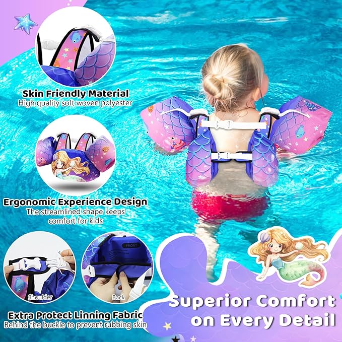 - 2024 Exclusive 3 in 1 Design:Unique armband detachable design offers multiple wearing options. By gradually reducing the use from a full vest arm bands and floties to eventually swimming unaided.It‘s the best gift choice for kids in all water activities.Have the Patent Approved No.:USD954885S & USD954889S