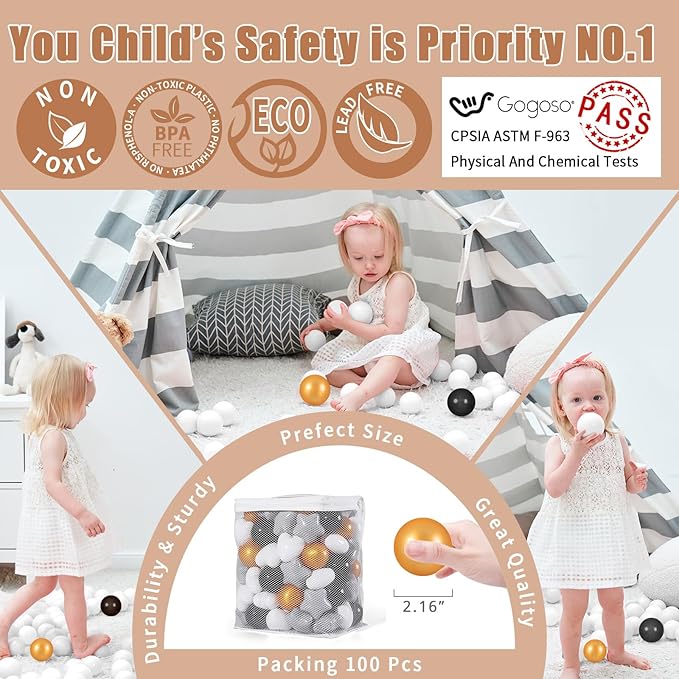 - Premium Quality: Our GOGOSO ball pits balls 100pcs stars and hearts are made made of phthalate-free, BPA-free, and non-toxic materials thicker and more durable materials, each ball capable of withstanding over 140 pounds of weight. Enjoy worry-free playtime!ensuring long-lasting fun for your kids play.