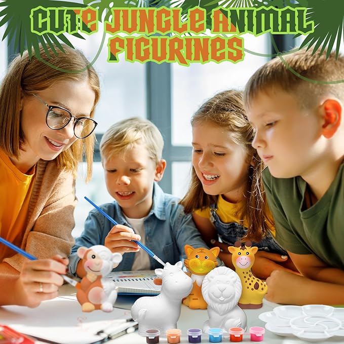 Gemscream 6 Sets Jungle Animal Painting Kit for Girls Boys Crafts and Arts Set Safari Zoo Wild Animal Toy Art and Crafts Ceramics to Paint for Classroom Activities Rewards Paint Figurines Gift