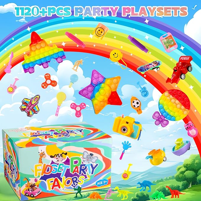 1120+PCS Party Favors for Kids,Fidget Toys Packs, Assorted Small Toys for Pinata Fillers Carnival Prizes,Goodie Bags Stuffers School Classroom Prizes Toys Bulk,Treasure Box Birthday Gifts