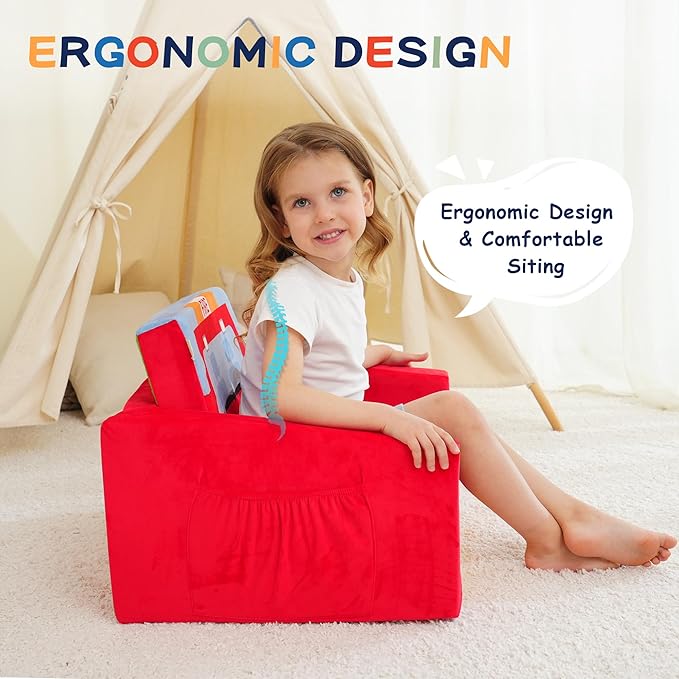 - MULTIFUNCTIONAL PCKETS: Storage bags on both sides of the kids couch a cover allow children to easily store story books and snacks. The lightweight design makes it easy to carry.