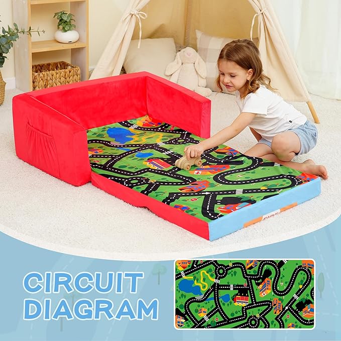 - 2 IN 1 - Perfectly sized sofa bed for children. Flip-open bottom piece 2 in 1 Open childrens sofa bed, gives childrens the option of lying down flat. Give children to read, play, or expended into a long sofa and take a nap to provide a more comfortable place.
